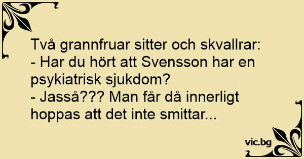 - Har du hört att Svensson har en psykiatrisk sjukdom?