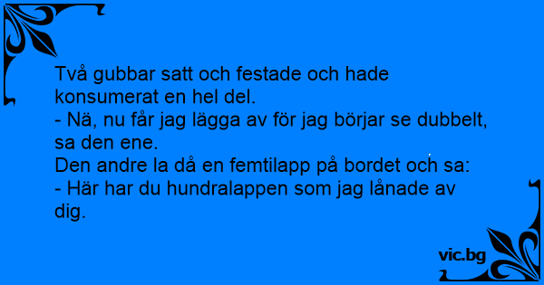 - Nä, nu får jag lägga av för jag börjar se dubbelt, sa den ene.