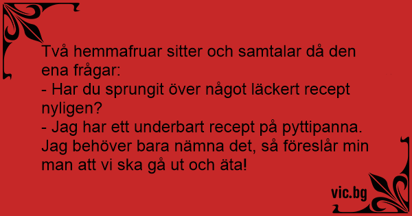 Två hemmafruar sitter och samtalar då den ena frågar: