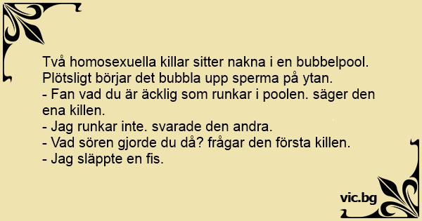 Två homosexuella killar sitter nakna i en bubbelpool. Plötsligt börjar det bubbla upp sperma på ytan.