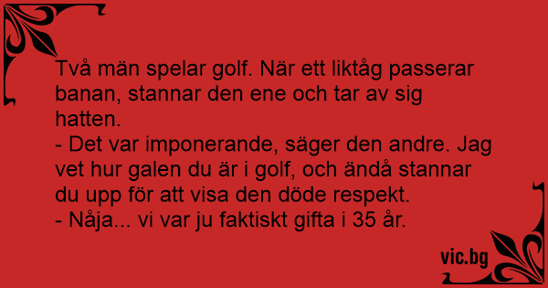 - Det var imponerande, säger den andre. Jag vet hur galen du är i golf, och ändå stannar du upp för att visa den döde respekt.