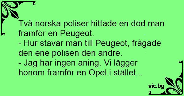 - Hur stavar man till Peugeot, frågade den ene polisen den andre.