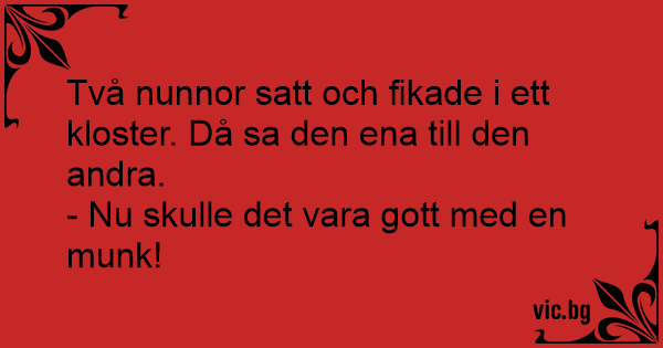 Två nunnor satt och fikade i ett kloster. Då sa den ena till den andra.