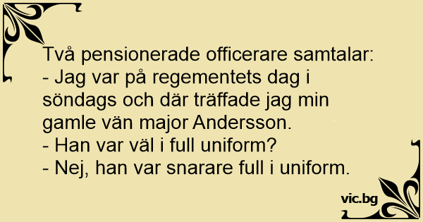 - Jag var på regementets dag i söndags och där träffade jag min gamle vän major Andersson.