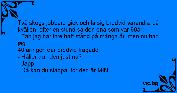 Två skogs jobbare gick och la sig bredvid varandra på kvällen, efter en stund sa den ena som var 60år: