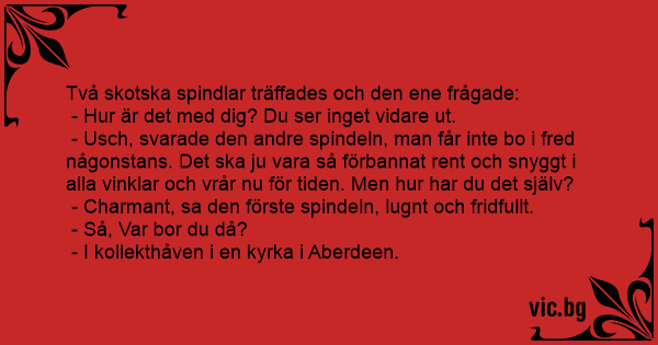 Två skotska spindlar träffades och den ene frågade:
