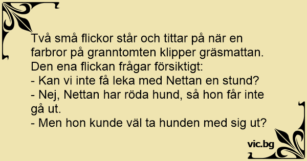 - Nej, Nettan har röda hund, så hon får inte gå ut.