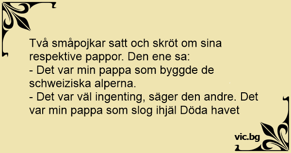 Två småpojkar satt och skröt om sina respektive pappor. Den ene sa: