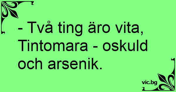 - Två ting äro vita, Tintomara - oskuld och arsenik.
