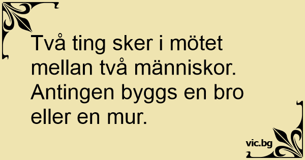 Två ting sker i mötet mellan två människor. Antingen byggs en bro eller en mur.