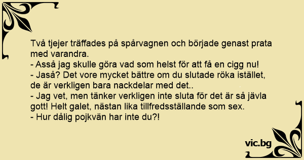 - Asså jag skulle göra vad som helst för att få en cigg nu!
