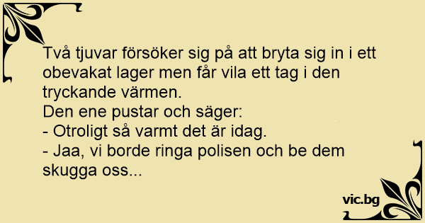 Två tjuvar försöker sig på att bryta sig in i ett obevakat lager men får vila ett tag i den tryckande värmen.