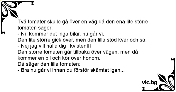 Två tomater skulle gå över en väg då den ena lite större tomaten säger: