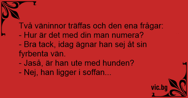 Två väninnor träffas och den ena frågar: