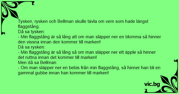 Tysken, rysken och Bellman skulle tävla om vem som hade längst flaggstång.