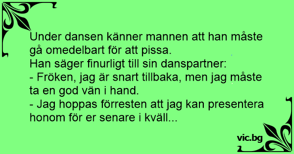 Under dansen känner mannen att han måste gå omedelbart för att pissa.