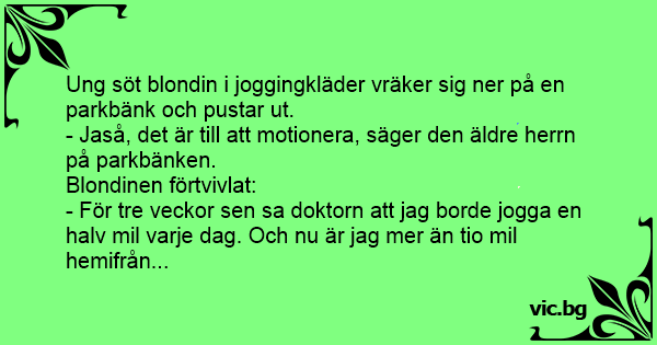 - Jaså, det är till att motionera, säger den äldre herrn på parkbänken.