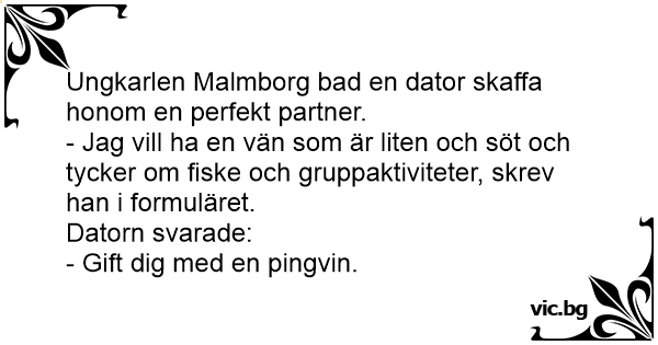 Ungkarlen Malmborg bad en dator skaffa honom en perfekt partner.