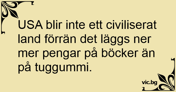 USA blir inte ett civiliserat land förrän det läggs ner mer pengar på böcker än på tuggummi.