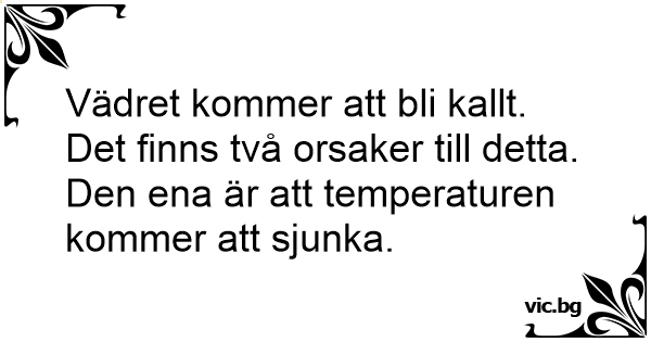 Vädret kommer att bli kallt. Det finns två orsaker till detta. Den ena är att temperaturen kommer att sjunka.