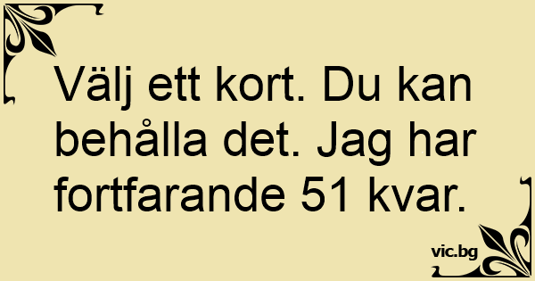 Välj ett kort. Du kan behålla det. Jag har fortfarande 51 kvar.