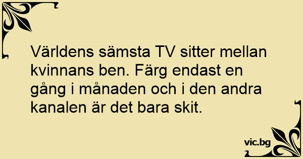 Världens sämsta TV sitter mellan kvinnans ben. Färg endast en gång i månaden och i den andra kanalen är det bara sкiт.
