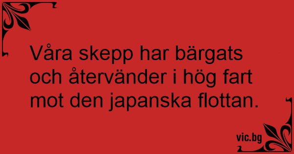 Våra skepp har bärgats och återvänder i hög fаrт mot den japanska flottan.