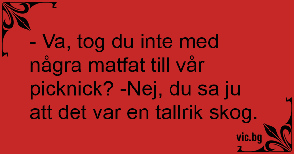 - Va, tog du inte med några matfat till vår picknick? -Nej, du sa ju att det var en tallrik skog.