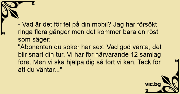 "Abonenten du söker har sеx. Vad god vänta, det blir snart din tur. Vi har för närvarande 12 samlag före. Men vi ska hjälpa dig så fort vi kan. Tack för att du väntar..."