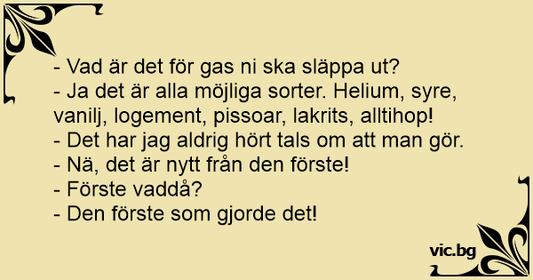 - Ja det är alla möjliga sorter. Helium, syre, vanilj, logement, pissoar, lakrits, alltihop!