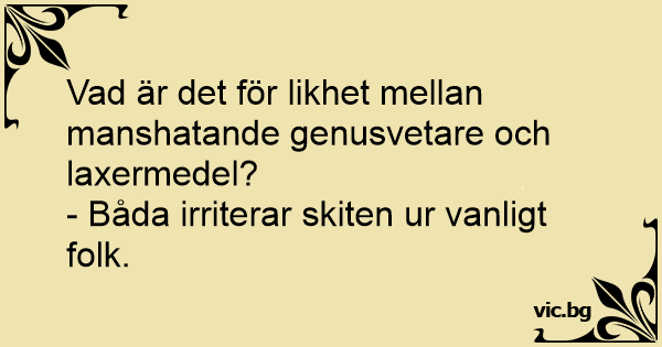 Vad är det för likhet mellan manshatande genusvetare och laxermedel?