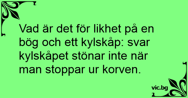 Vad är det för likhet på en вög och ett kylskåp: svar kylskåpet stönar inte när man stoppar ur korven.