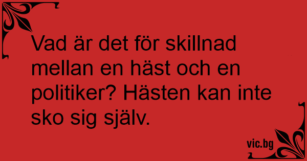 Vad är det för skillnad mellan en häst och en politiker? Hästen kan inte sko sig själv.