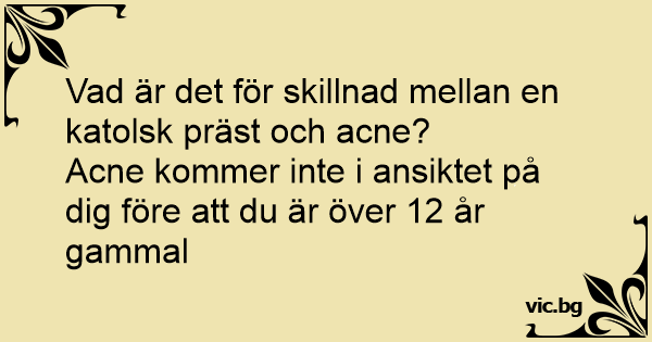 Was ist der Unterschied zwischen einem katholischen Priester und Akne? Akne kommt erst auf dein Gesicht, wenn du 13 bist.