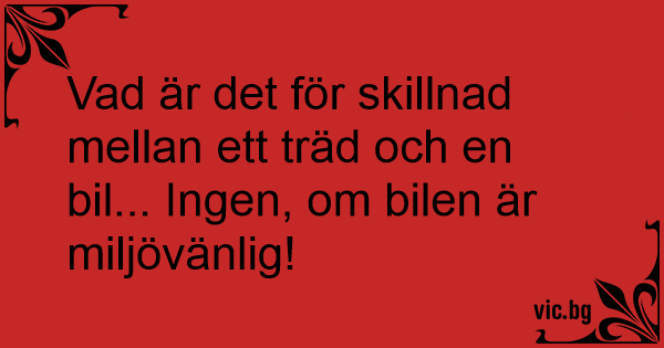 Vad är det för skillnad mellan ett träd och en bil... Ingen, om bilen är miljövänlig!
