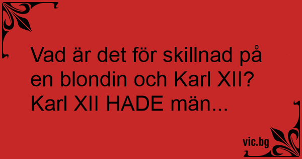Vad är det för skillnad på en blondin och Karl XII?<br />Karl XII HADE män...