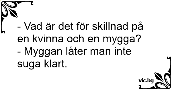 Hvad er forskellen på en myg og en kvinde? Kvinden får lov til at sutte færdig, før hun får et klask i røven!