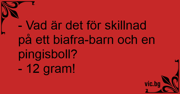 - Vad är det för skillnad på ett biafra-barn och en pingisboll?