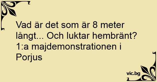 Vad är det som är 8 meter långt... Och luktar hembränt?