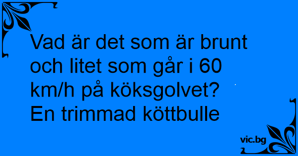 Vad är det som är brunt och litet som går i 60 km/h på köksgolvet?