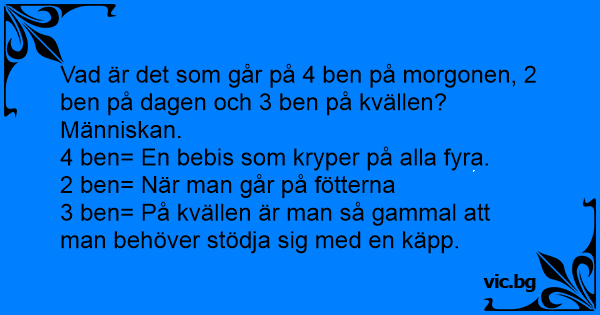 Vad är det som går på 4 ben på morgonen, 2 ben på dagen och 3 ben på kvällen?