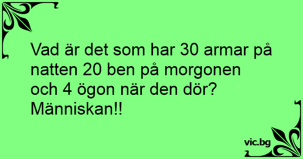 Vad är det som har 30 armar på natten 20 ben på morgonen och 4 ögon när den dör?