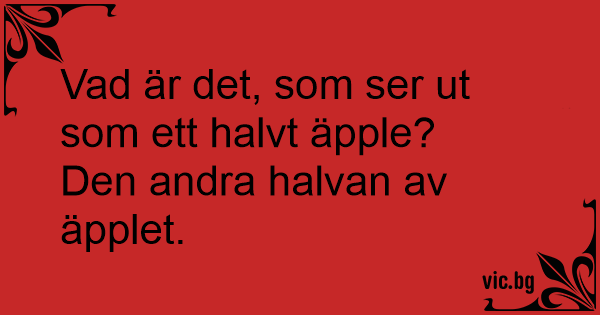 Vad är det, som ser ut som ett halvt äpple?<br />Den andra halvan av äpplet.