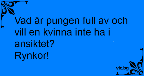 Vad är pungen full av och vill en kvinna inte ha i ansiktet?