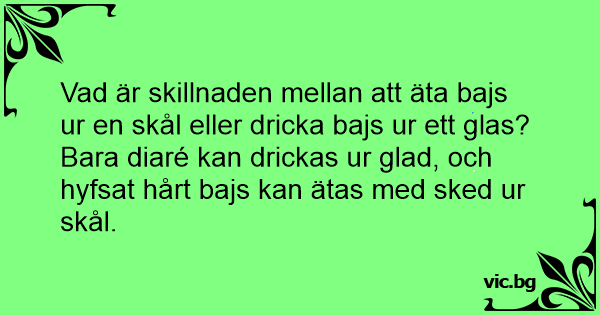 Bara diaré kan drickas ur glad, och hyfsat hårt bajs kan ätas med sked ur skål.