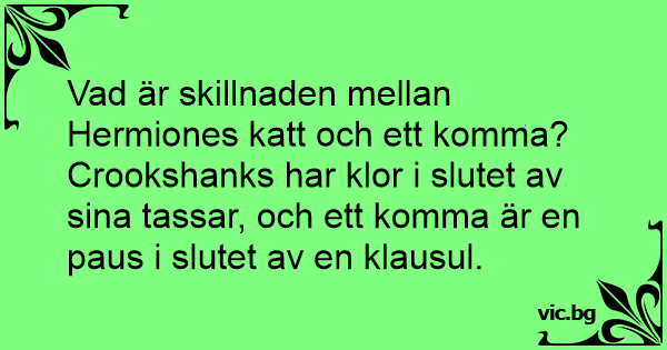 Vad är skillnaden mellan Hermiones katt och ett komma?