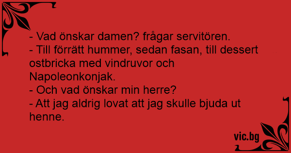 - Till förrätt hummer, sedan fasan, till dessert ostbricka med vindruvor och Napoleonkonjak.