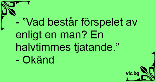 - ”Vad består förspelet av enligt en man? En halvtimmes tjatande.” - Okänd