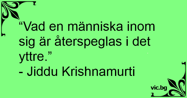 “Vad en människa inom sig är återspeglas i det yttre.”