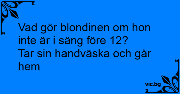 Vad gör en blondin som inte är i säng före midnatt? Ger upp och går hem från krogen.